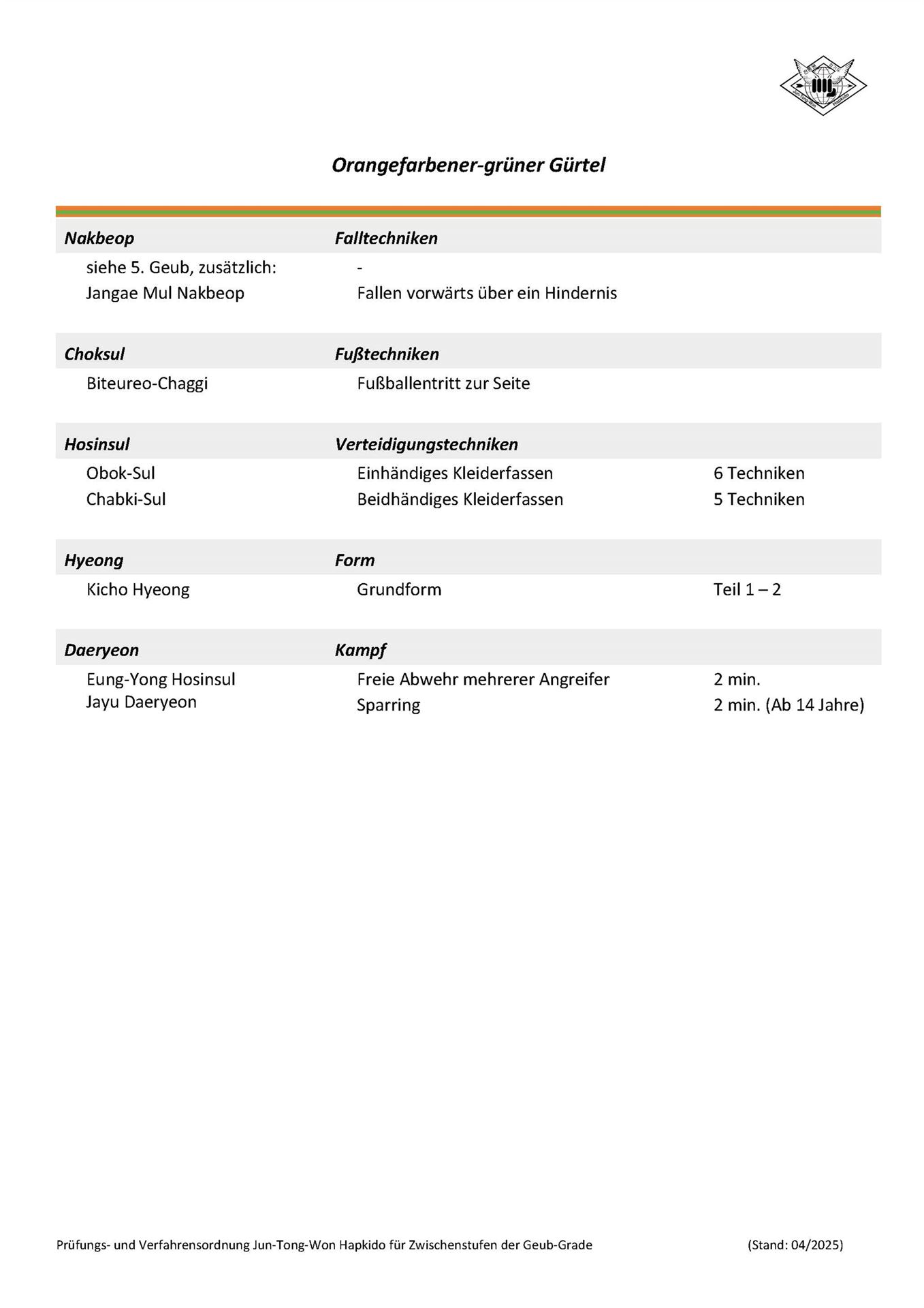 Verfahrensbestimmungen für Gürtelprüfungen